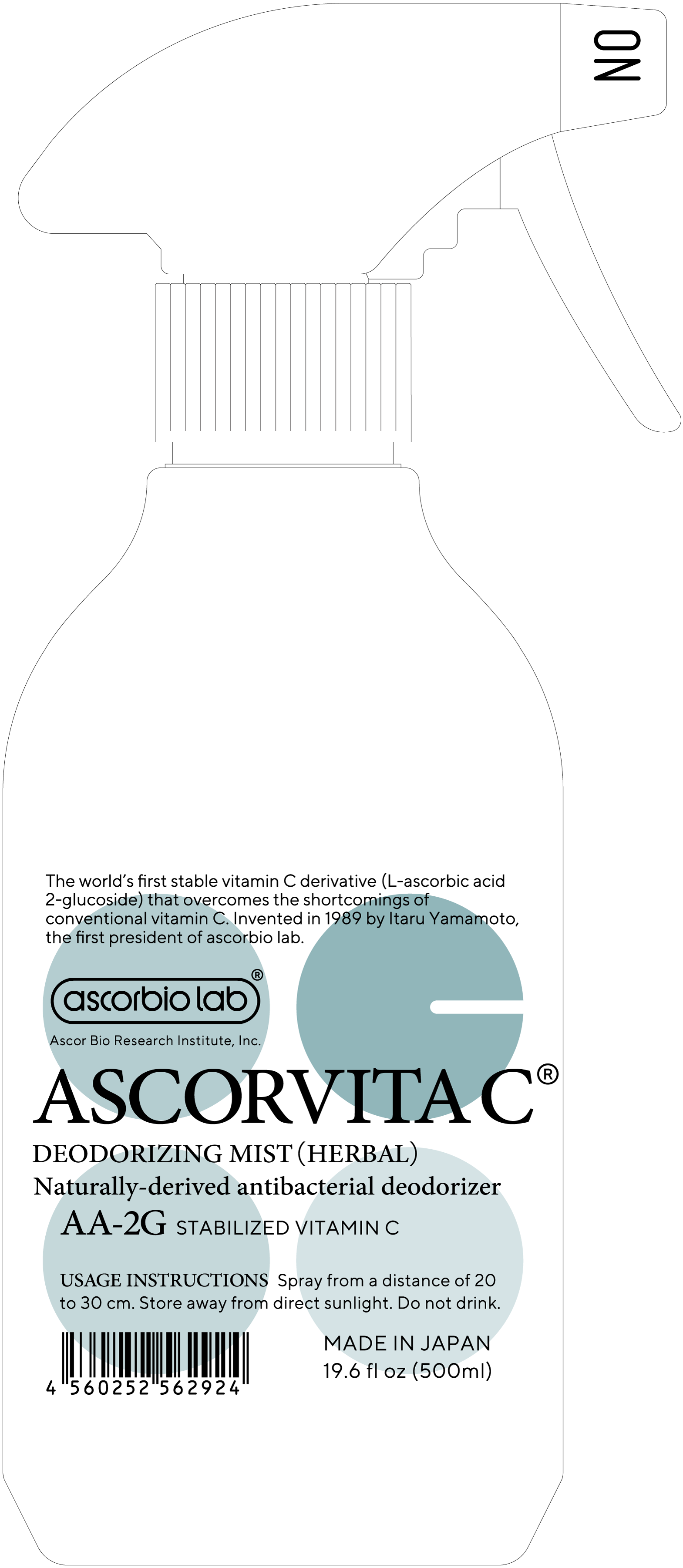 アスコルビタC 消臭抗菌ミスト(ハーバル) 自然の恵みとビタミンCの力で消臭抗菌 定期便 定期便を申し込む 定期便のご案内 通常商品 製品の詳細 500ml 定期便 定期便を申し込む 定期便のご案内 通常商品 製品の詳細
