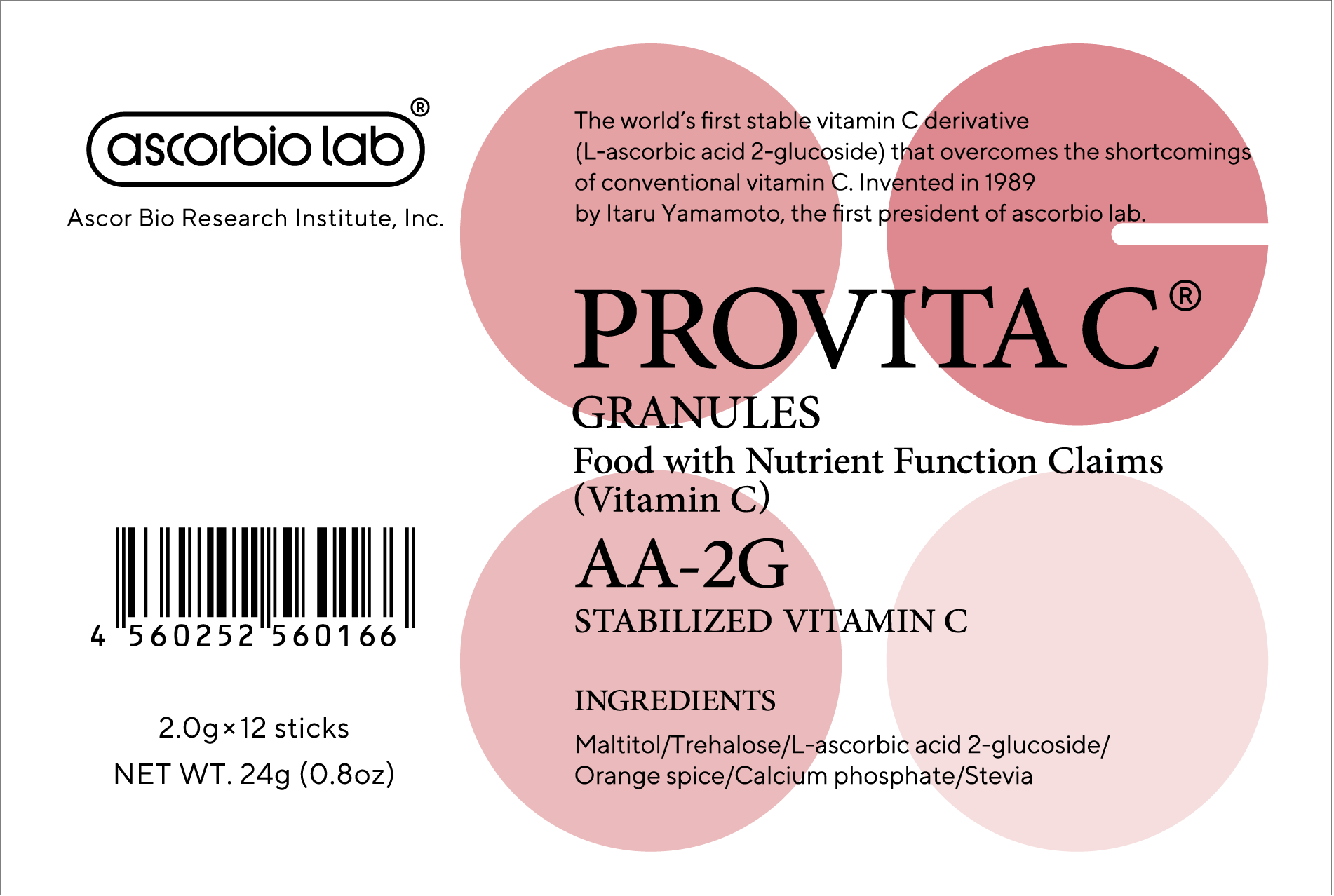 プロビタC顆粒(ミニサイズ) 身体のことを大切に思う人のための顆粒状のビタミンC誘導体「AA-2G」サプリメント「プロビタC顆粒」のミニサイズ 製品の詳細 24 g(2.0 g×12包入)/およそ6日分 製品の詳細